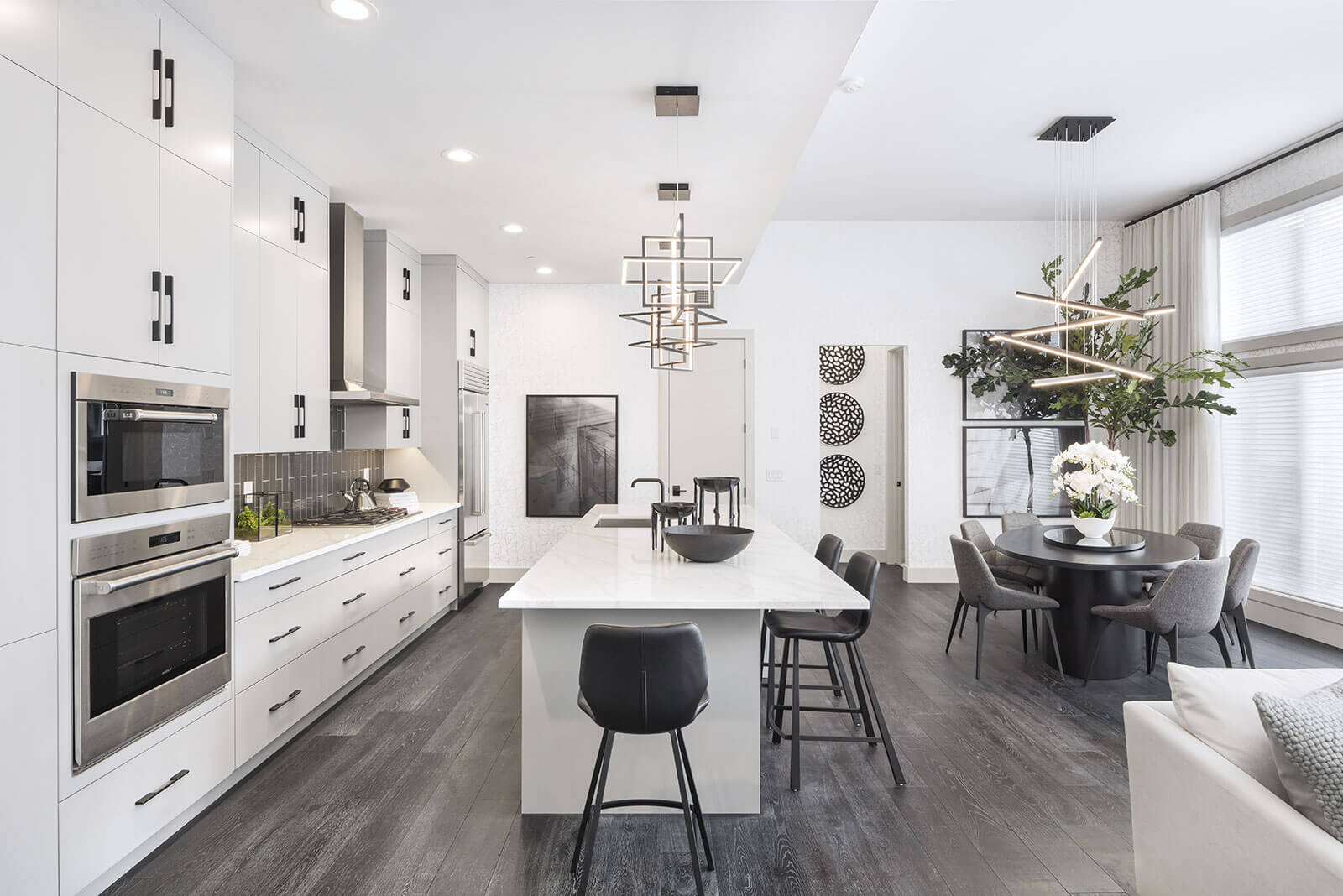 Condos for sale in Westman Village Calgary feature impressive specifications, the most notable of which include: 500 to 3,000+ square foot floor plans, chef-inspired kitchens, spa-like bathrooms, large balconies with spectacular views, high-end stainless steel appliances, luxury laminate plank flooring, plush carpet, spacious walk-in closets, thick quartz countertops, in-floor heating for some units, and ample storage space.